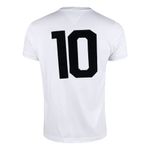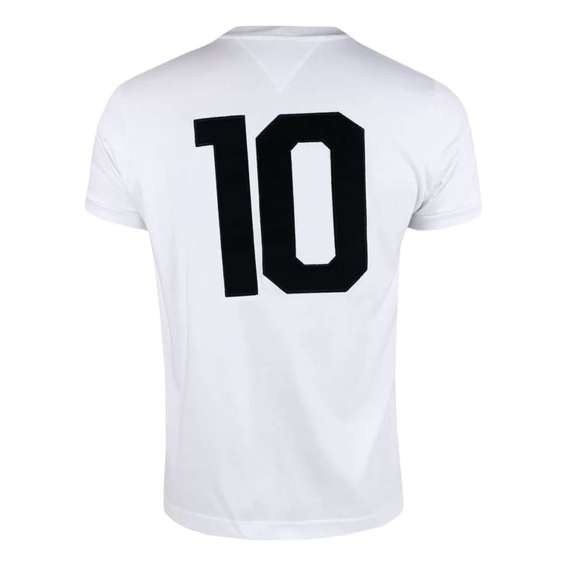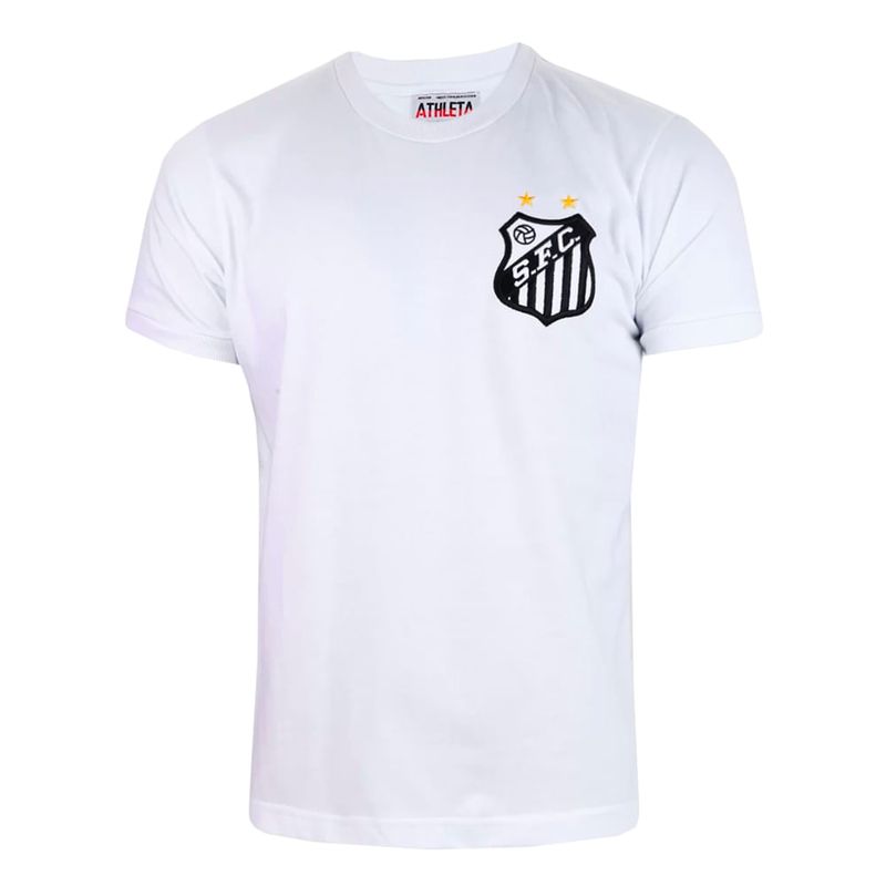 Relembre um manto do jogo que “parou uma guerra” com a Camisa Retrô do Santos 1969 Athleta Masculina. Trazendo o número 10 nas costas, esse manto retrô resgata o uniforme do Santos de 1969, ano de marcas históricas: o milésimo gol do Pelé, e do amistoso que o Peixe jogou no continente africano que parou uma guerra civil. A peça é feita em algodão resistente, produzido pela marca Athleta, a mesma que vestiu o Rei na época e que agora traz uma reprodução legítima de um manto verdadeiramente marcante para a história do Santos Futebol Clube.
