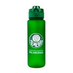 Garrafa de plástico com capacidade para 600 ml na cor e gravada com escudo do seu time. Tampa abre e fecha para higiene do bico. Vem com alça para segurar na mão.