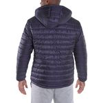 Jaqueta feita em tecido plano de ripstop leve em matelasse com forro interno contrastante. Gola com zíper para armazenamento do capuz, bolsos frontais e interno e capuz removível. Logo não refletivo.