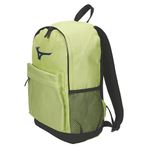 Mochila construida em tecido resistente e com aspecto rajado, possui bolso frontal para armazenar pequenos objetos e divisória interna no bolso princial. Mochila com bolso princial espaçoso, alças de ombro ajustáveis e confeccionadas com acolchoamento em mesh respirável para máximo conforto. Logo Mizuno em tamanho grande aplicado na parte frontal.